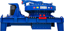 制砂階段:14mm以下的物料進入制砂機內通過離心力將物料甩出與襯板和物料相互撞擊將物料破碎,然后由設備排料口排出落到設備下方的2#上料皮帶上;
